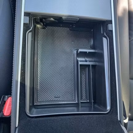 Käytännöllinen muovinen säilytyslaatikko, joka voidaan asentaa käsinojaan lisäsäilytystä varten.