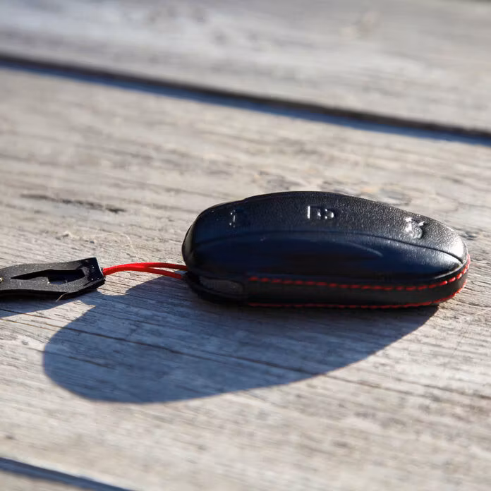 Käytännöllinen nahkainen avainpidike Tesla-avaimellesi.