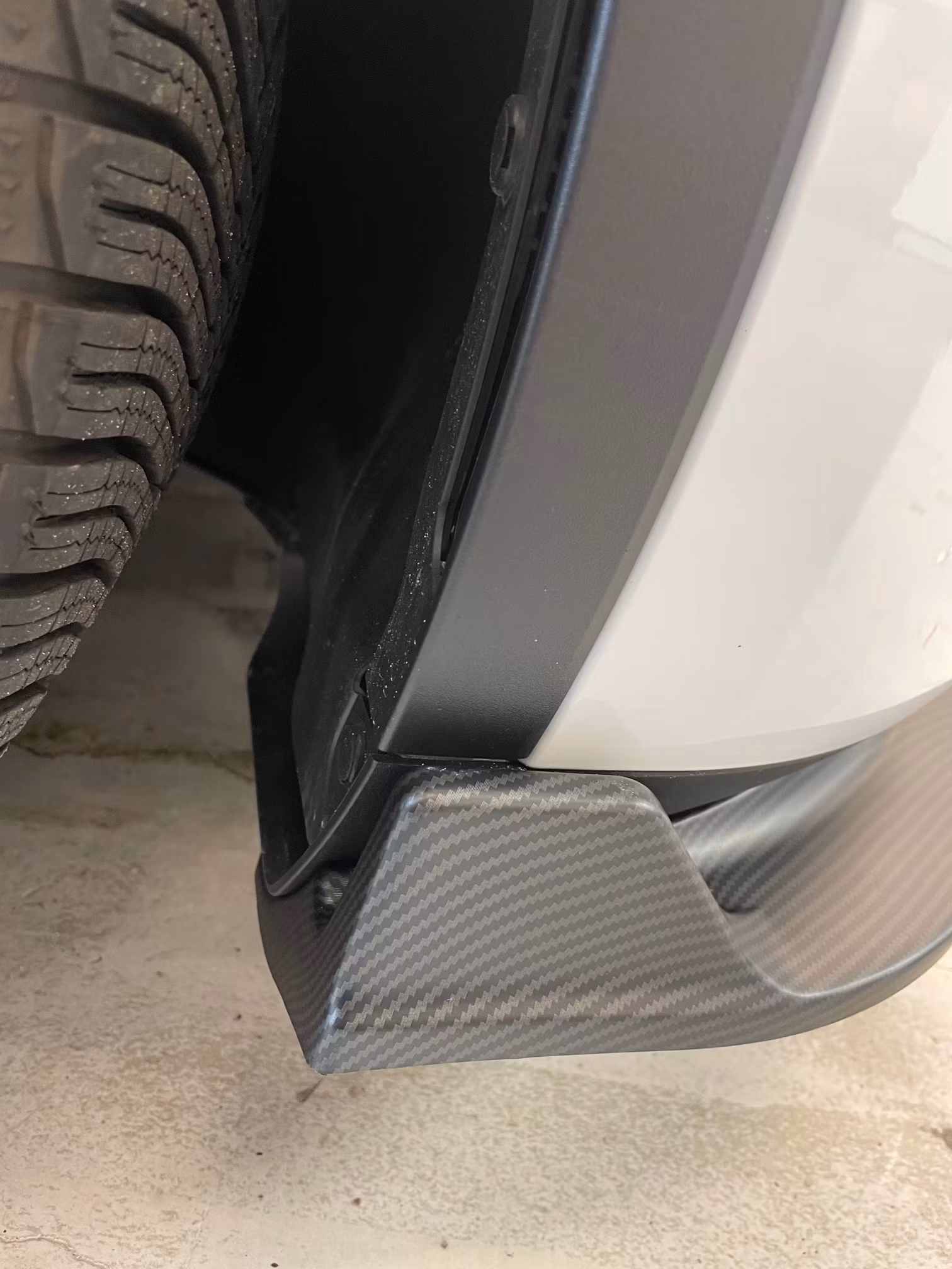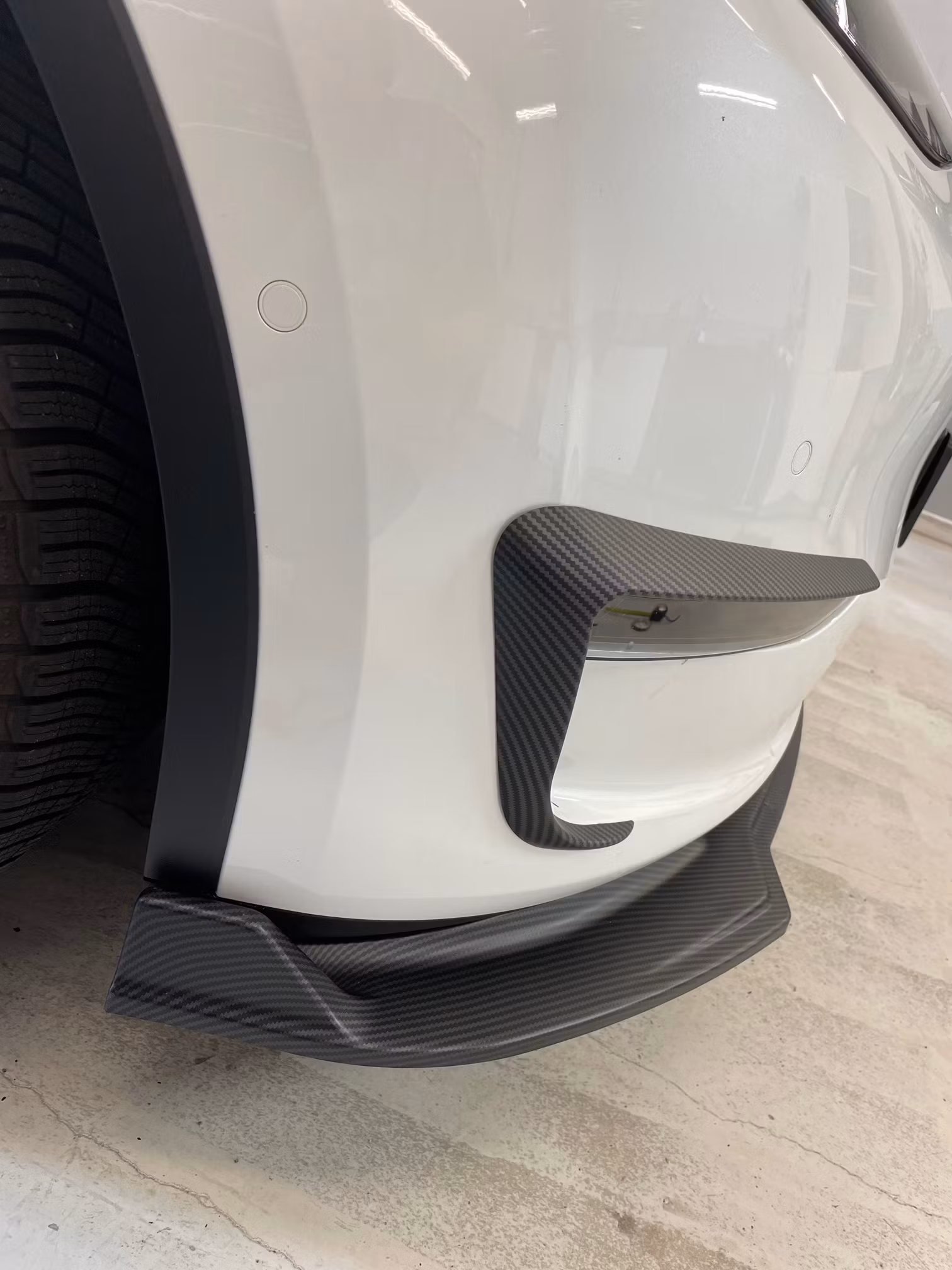 Tyylikäs etuspoileri matta hiilikuidusta kolmessa osassa, jonka voit helposti asentaa Tesla Model Y:seen saadaksesi urheilullisemman ja viileämmän ilmeen.